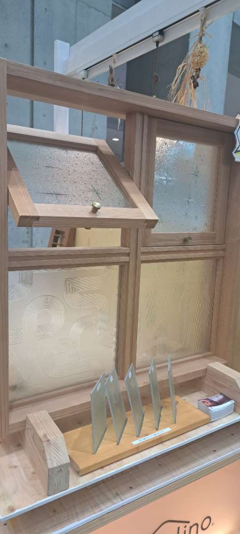 昭和レトロガラスを使った木製室内窓