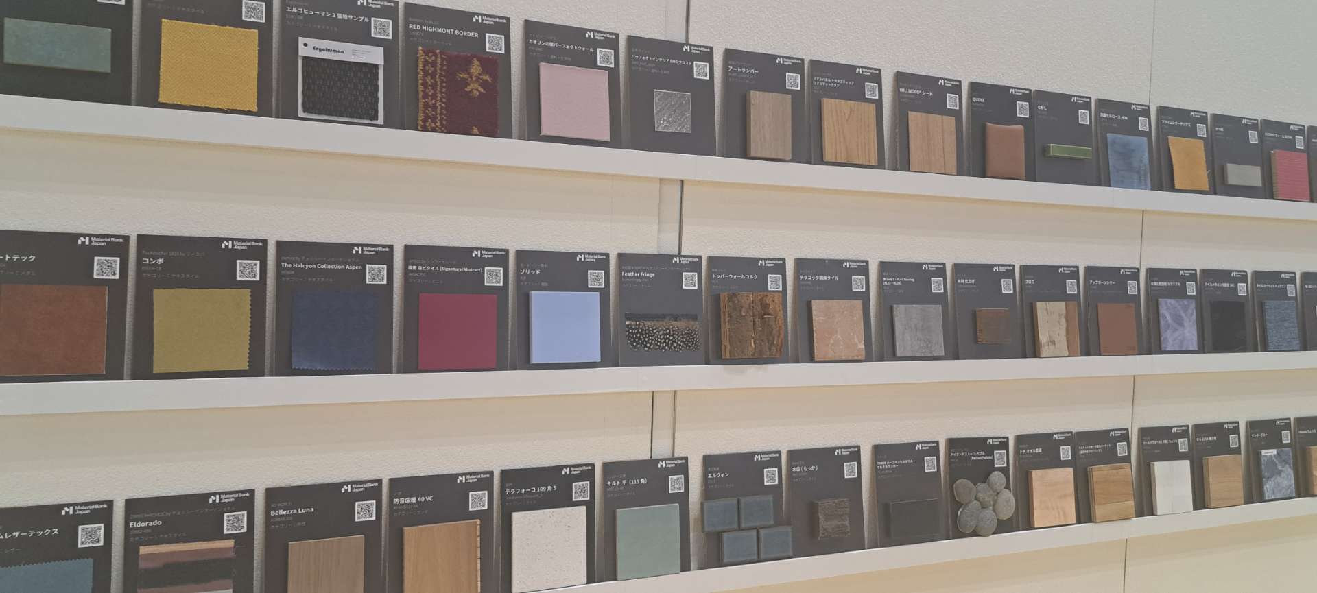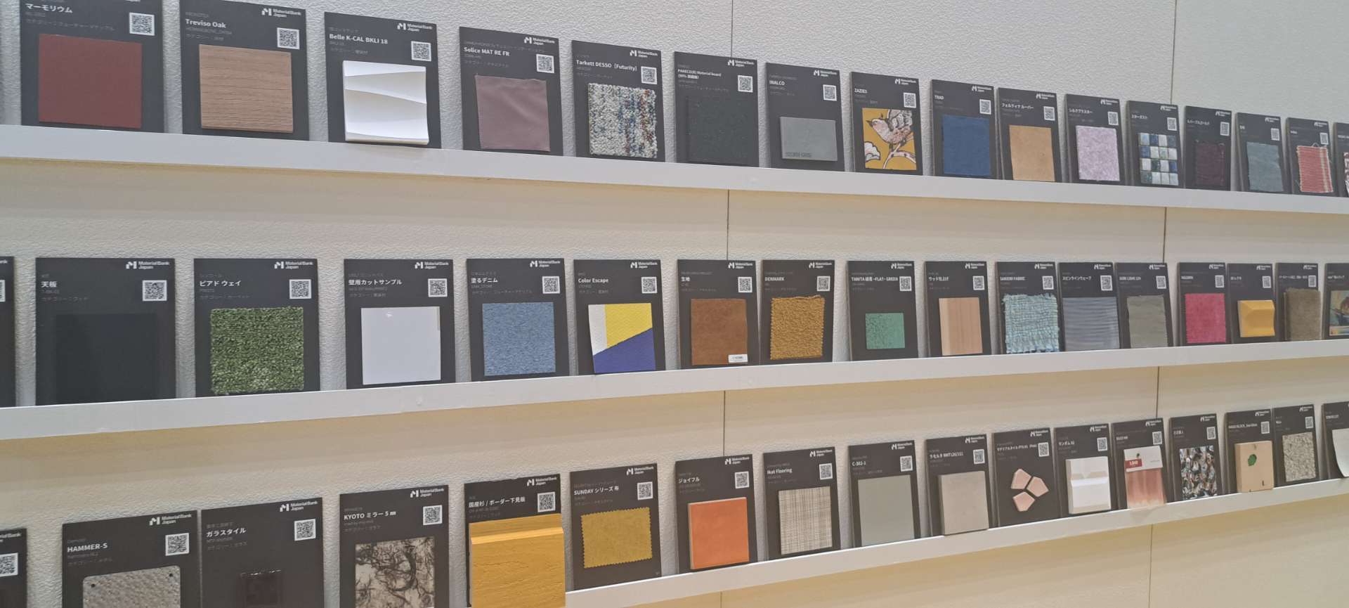 床材、壁装材、タイルなどさまざまな種類の建材サンプルが
